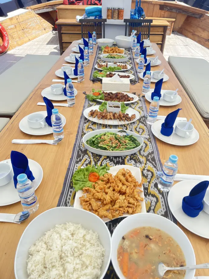 Another hearty lunch is served while the boat cruises toward Komodo Island.